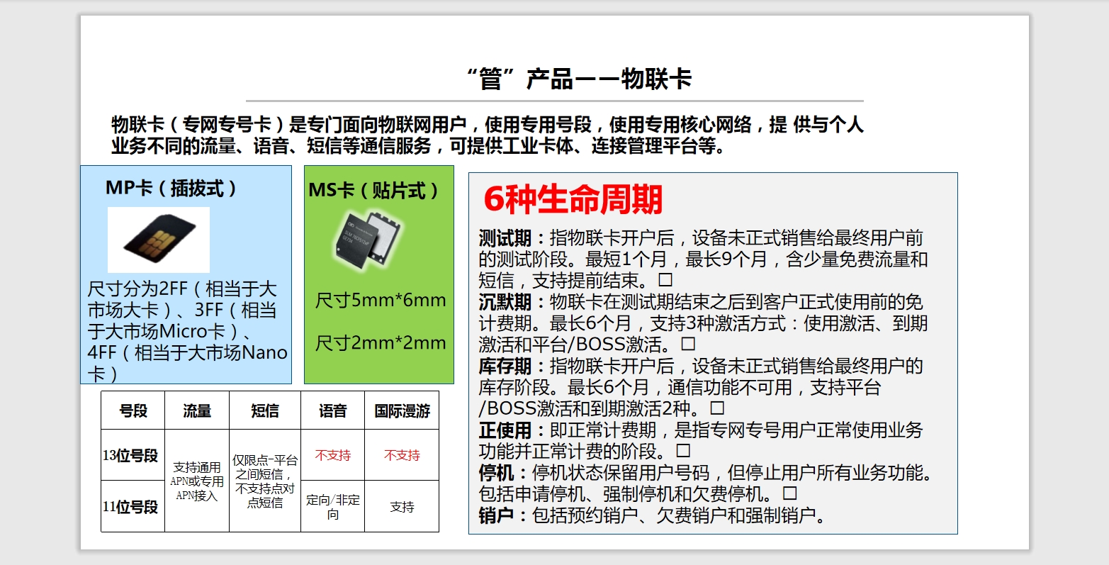 自主远程激活号卡、自主停开流量、实现数据分析。